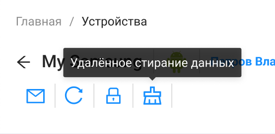 - В карточке устройства на панели управления нажать Удаленное стирание данных.