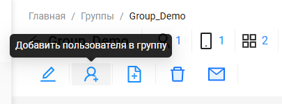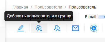 На панели управления пользователем располагаются кнопки “Добавить пользователя в группу” и “Удалить пользователя из группы”.