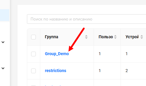 Администратор может просматривать детальную информацию о группе, нажав на ее название в списке.